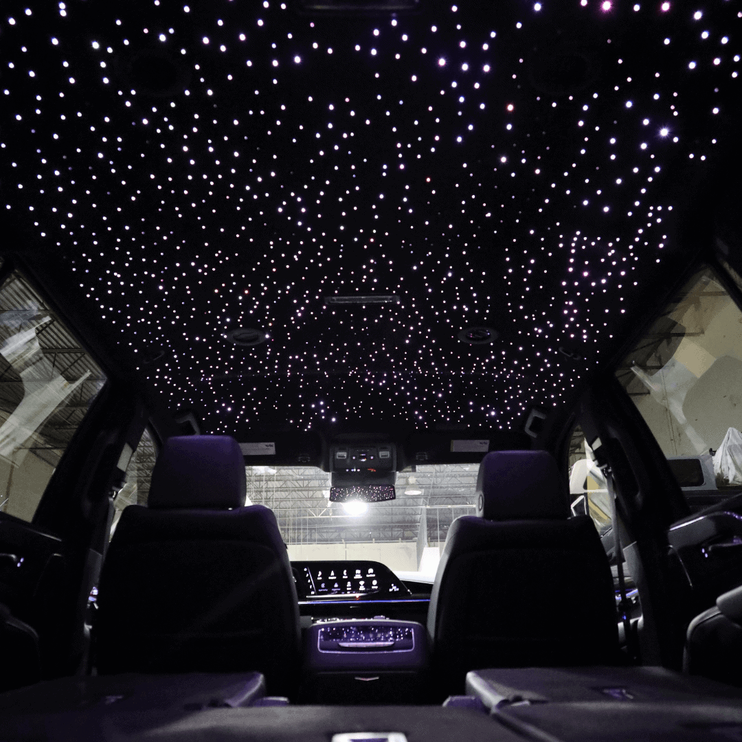 A great starlight headliner should look intentional from every seat in Atlanta, GA. We map star clusters to follow body lines and interior stitching so the pattern flows naturally. You can select twinkle effects, dim-to-dark settings, or solid glow for a calm lounge feel. For vehicles with sunroofs or panoramic glass, we design around openings so the sky effect remains balanced. Control modules are tucked away neatly, and wiring is protected in loom so service remains simple. If your build includes unique upholstery or trim, we coordinate fiber placement to complement textures and colors. The result is a headliner that looks seamless and feels premium every time the lights go on.